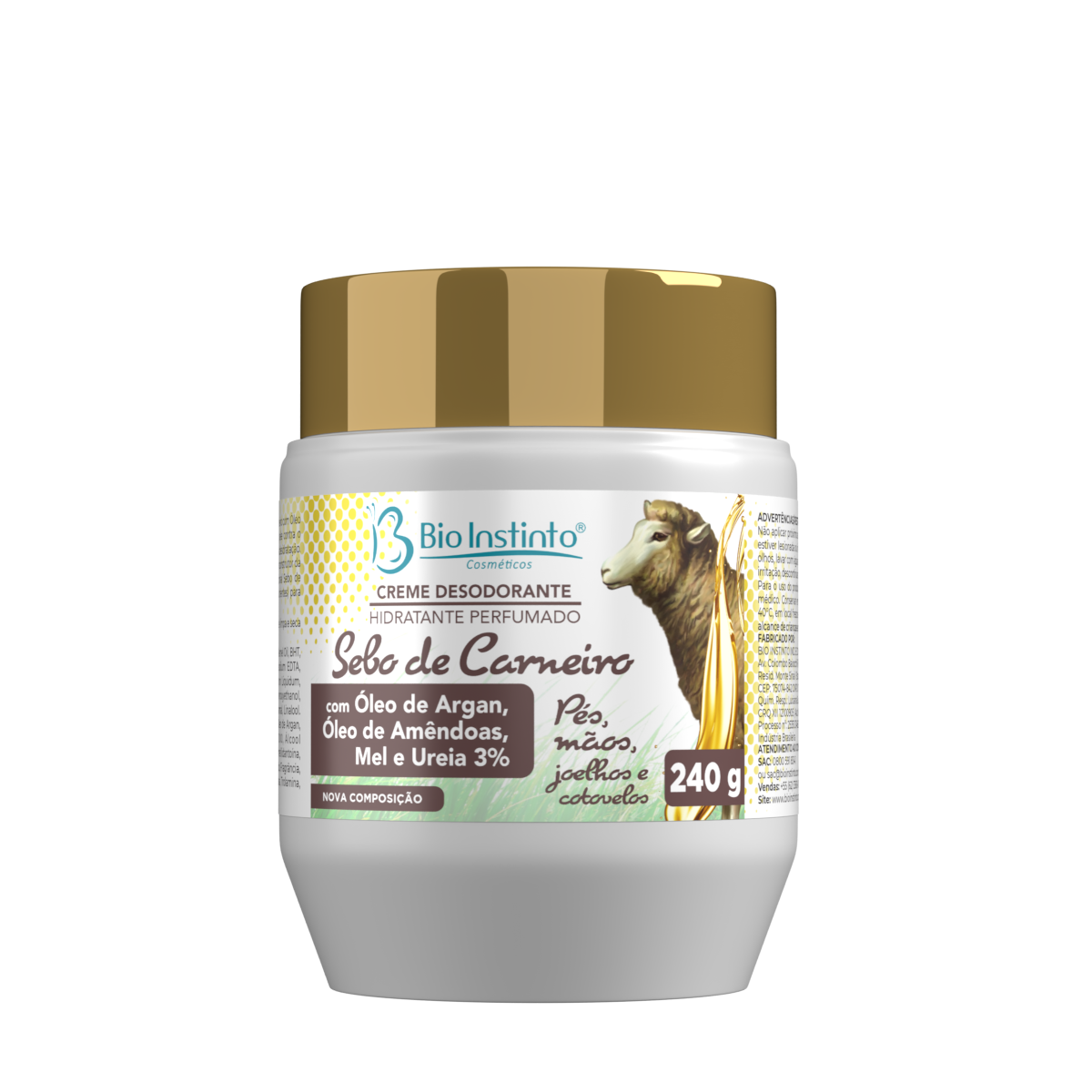 - CREME DES. HIDR. PERF. SEBO DE CARNEIRO COM OLEO DE ARGAN 240G BIO INSTINTO